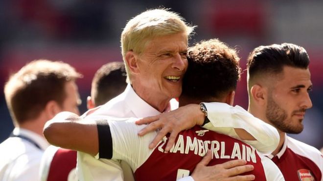 Alexis Sanchez na Mesut Ozil walianza msimu wa mikataba yao mipya lakini wote hawakucheza mechi ya Wembley, lakini wote kujiunga kusherehekea penalti ya ushindi wa Olivier Giroud.